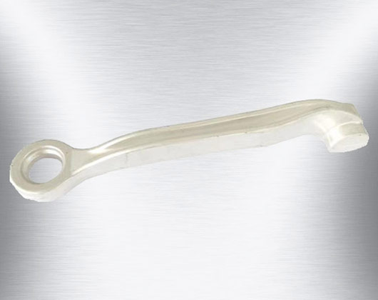 目前鍛造汽車用鋁合金控制臂的材料多為6061和6082鋁合金,鍛坯的來源有擠壓棒材、半連續(xù)鑄造棒材、半連續(xù)鑄造異形錠,對于擠壓棒材,需要經(jīng)過切斷、輥鍛彎曲、預(yù)鍛、終鍛、熱處理等工序;對于半連續(xù)鑄造包材,在切斷前需要經(jīng)過均勻化處理;異形錠是指用半連續(xù)鑄造的方式直接制備出錠坯形狀與終端控制臂鍛造產(chǎn)品外形接近的近終形汽車用鋁合金鍛坯,錠坯經(jīng)切片后直接鍛造成型。異形錠相對于圓棒而言,工序大為縮短,但鑄造質(zhì)量控制更難一些。
